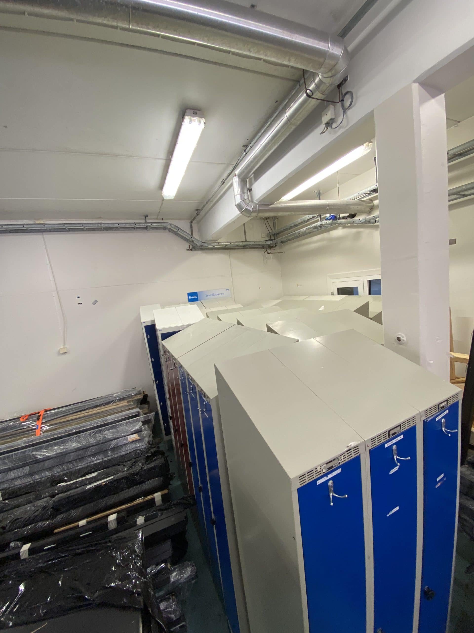 Garderobeskap med lås og nøkkel.