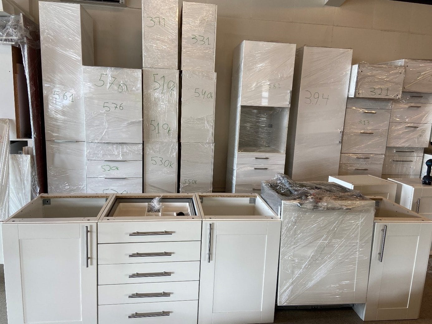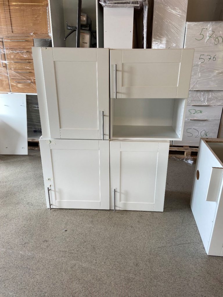 Kjøkken i åtte deler med skap til vask, overskap og underskap.