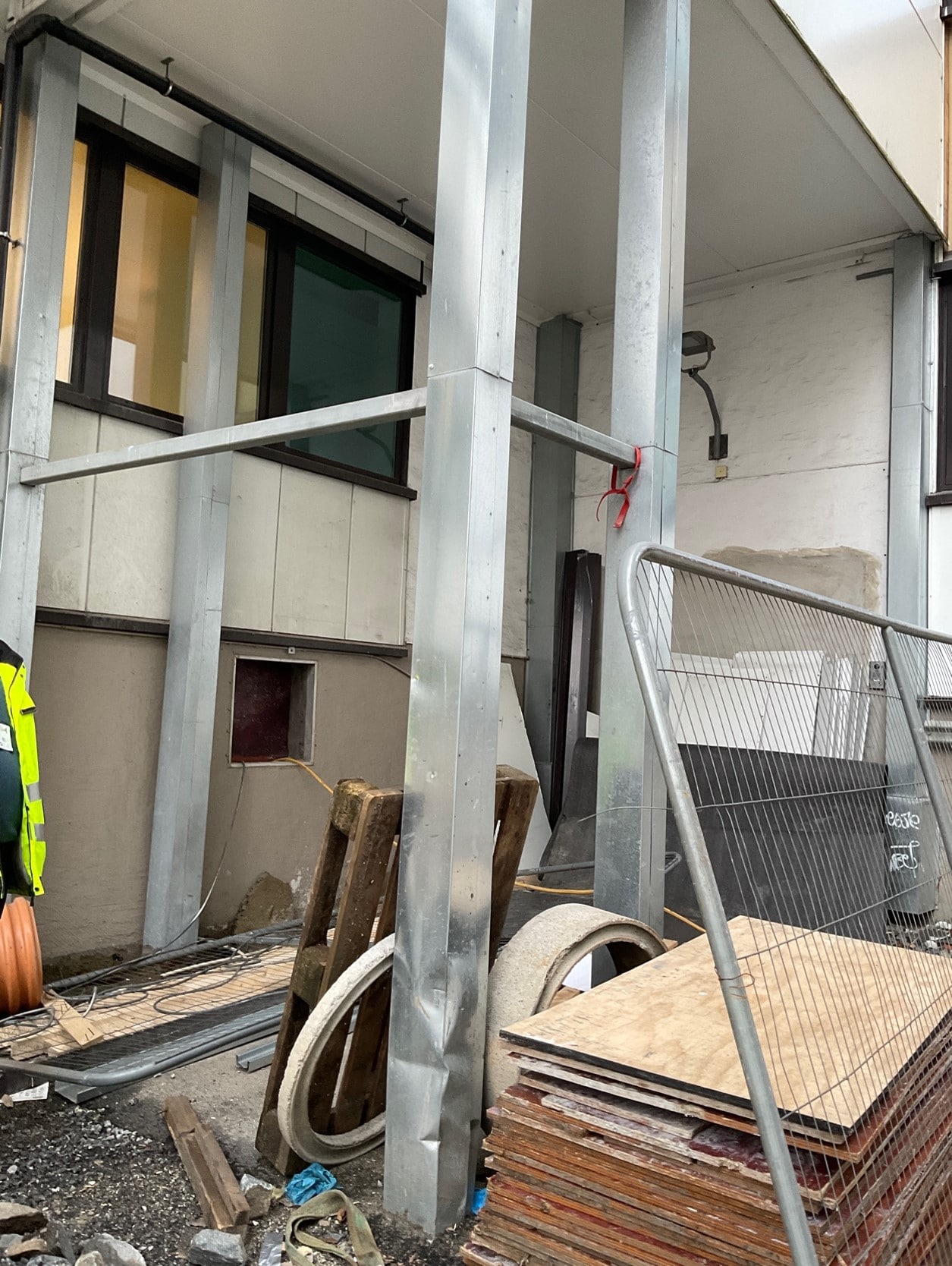 Ståltrappen er i fire etasjer med tilhørende isolert trappehus. Trappetrinn, gelenderelementer, vanger og bærende søylesystem er i galvanisert stål. Tekniske tegninger følger med.
